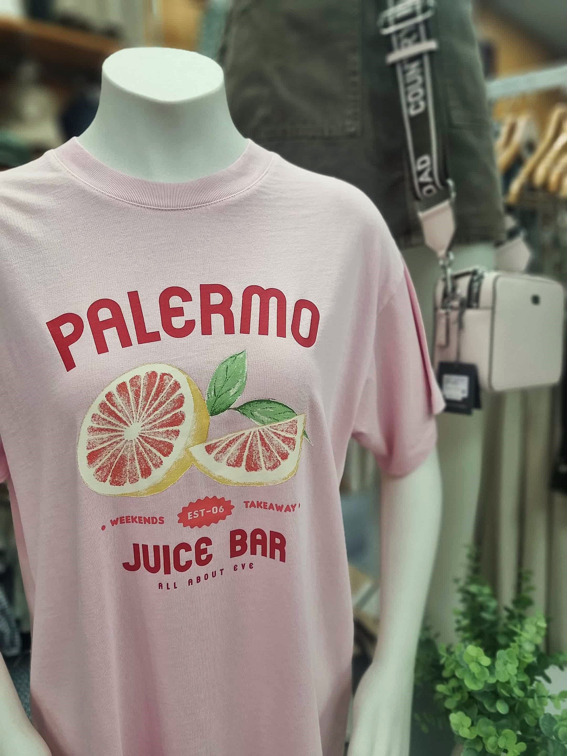 The Palermo Relaxed Tee brings a bold twist to everyday wear with its charcoal base and striking red text, finished with a playful grapefruit graphic for a fresh, zesty vibe. Its relaxed fit and soft cotton fabric make it a go-to for effortless style. Pair with denim or wide-leg pants for an easy, standout look.