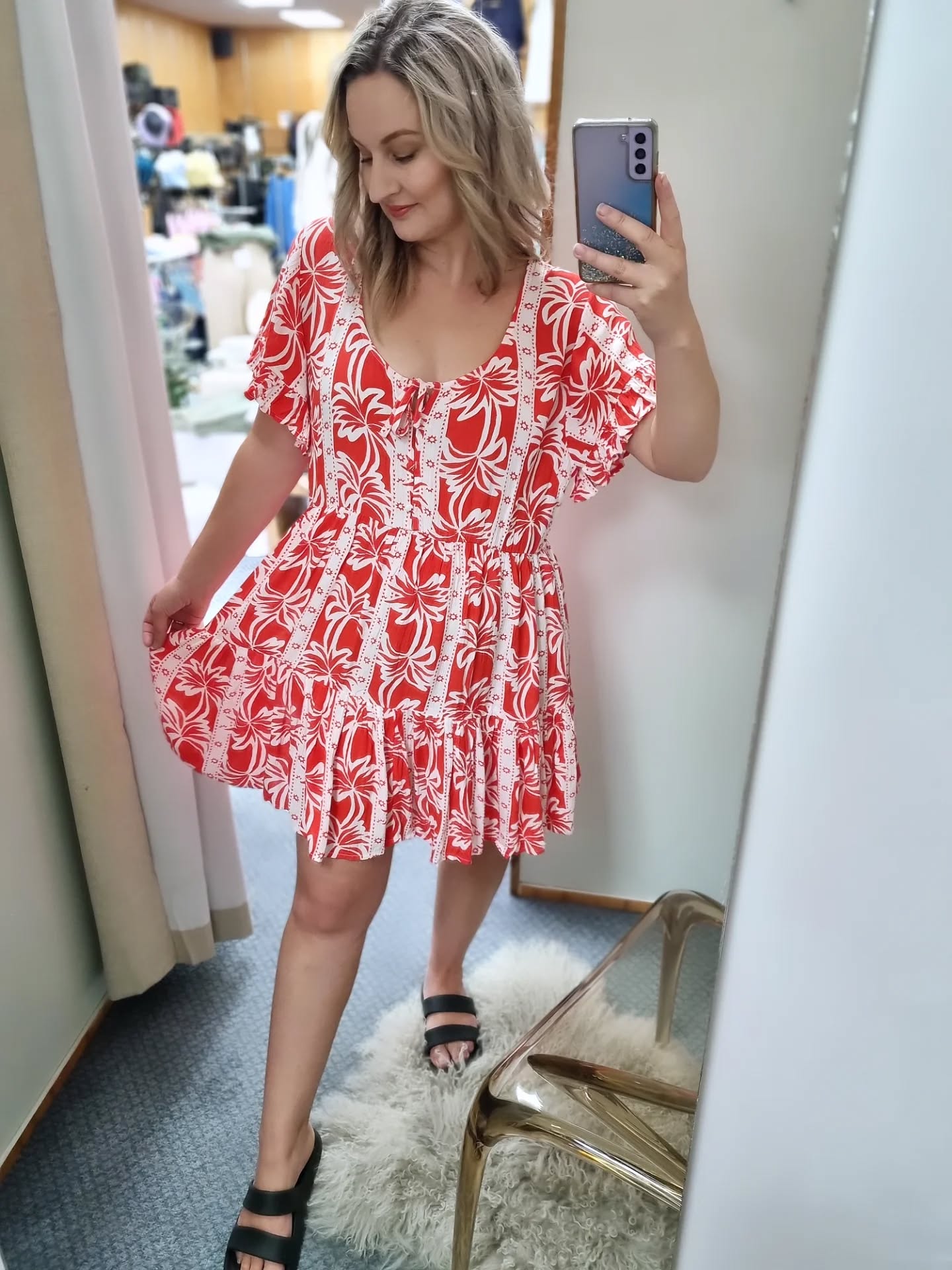 The Row Of Palms Tiered Dress is your go-to for sunnier days. Whether you’re tossing it over your bikini for a beach stroll or heading to brunch with the girlies, she’s got your back—breezy, effortless, and ready for wherever the day takes you.