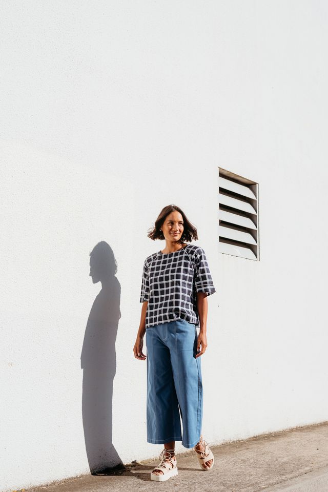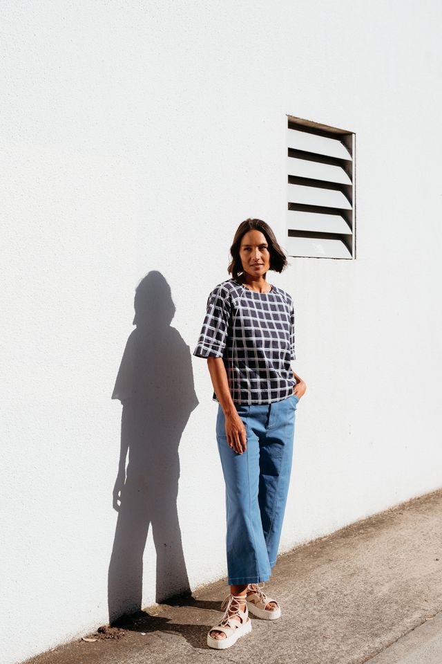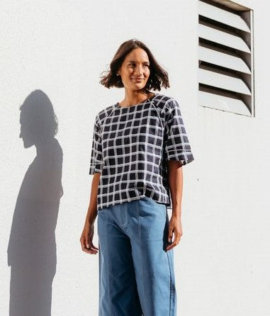 A contemporary take on the classic shell top, this short-sleeved style blends clean lines with subtle fashion detailing. Cut from crisp cotton for a lightweight yet structured feel, it features a not-quite-tee silhouette—streamlined and elevated. Contrast tape accents add a refined edge, offering a directional finish that makes this a wardrobe must have.