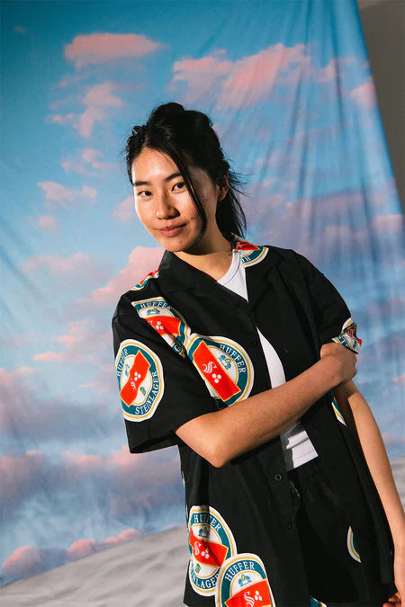 100% Cotton / 170gsm / Custom Huffer digital yardage print / Short sleeve / Relaxed fit / Camp collar / Huffer branded buttons