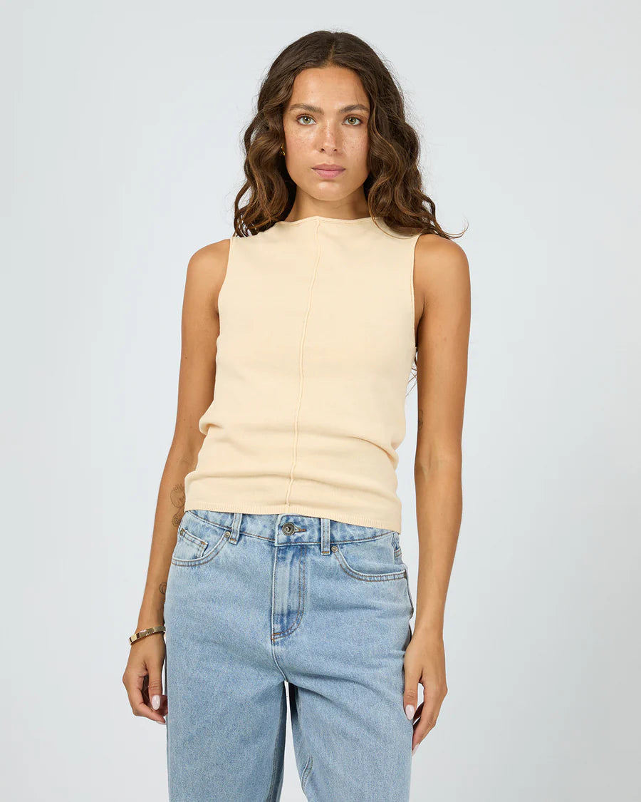 Looking for an elevated basic that can take you from the beach to the bar, look no further than our Ellis Tank Top. Made from a subtle stretch knit this tank features a high boat neckline with seam detail down front and back, as well as rolled edges. Available in 2 summer staple colourways, pair back with your favourite denim and be ready for wherever the day takes you.